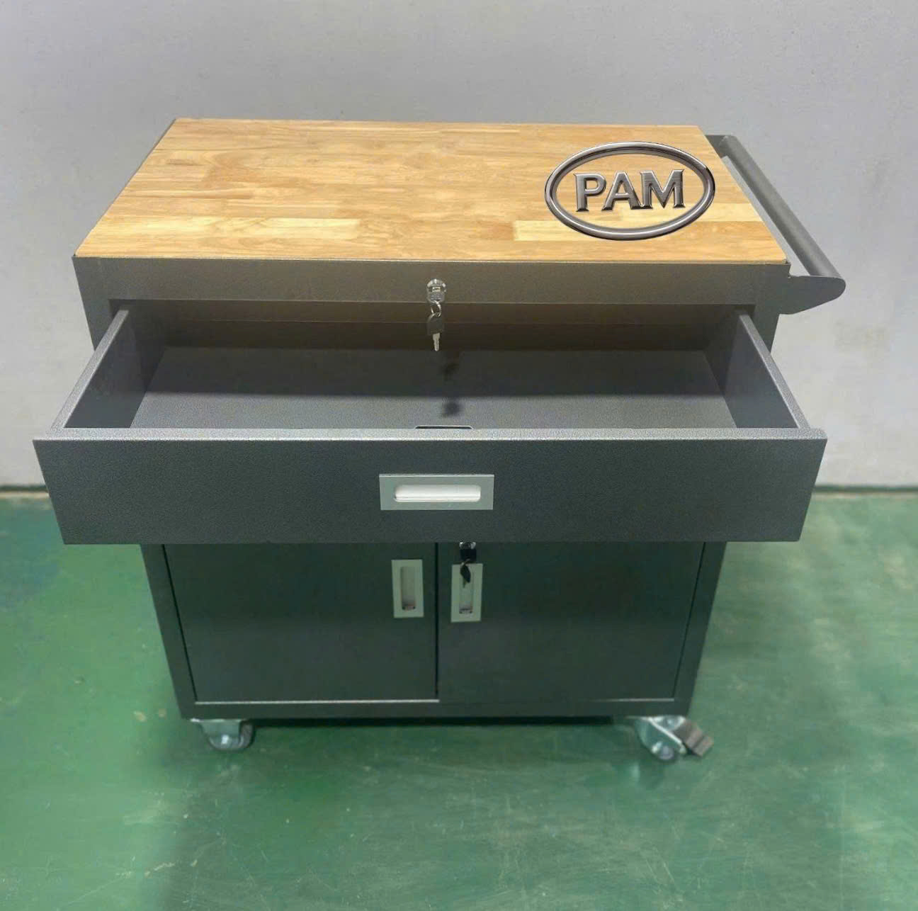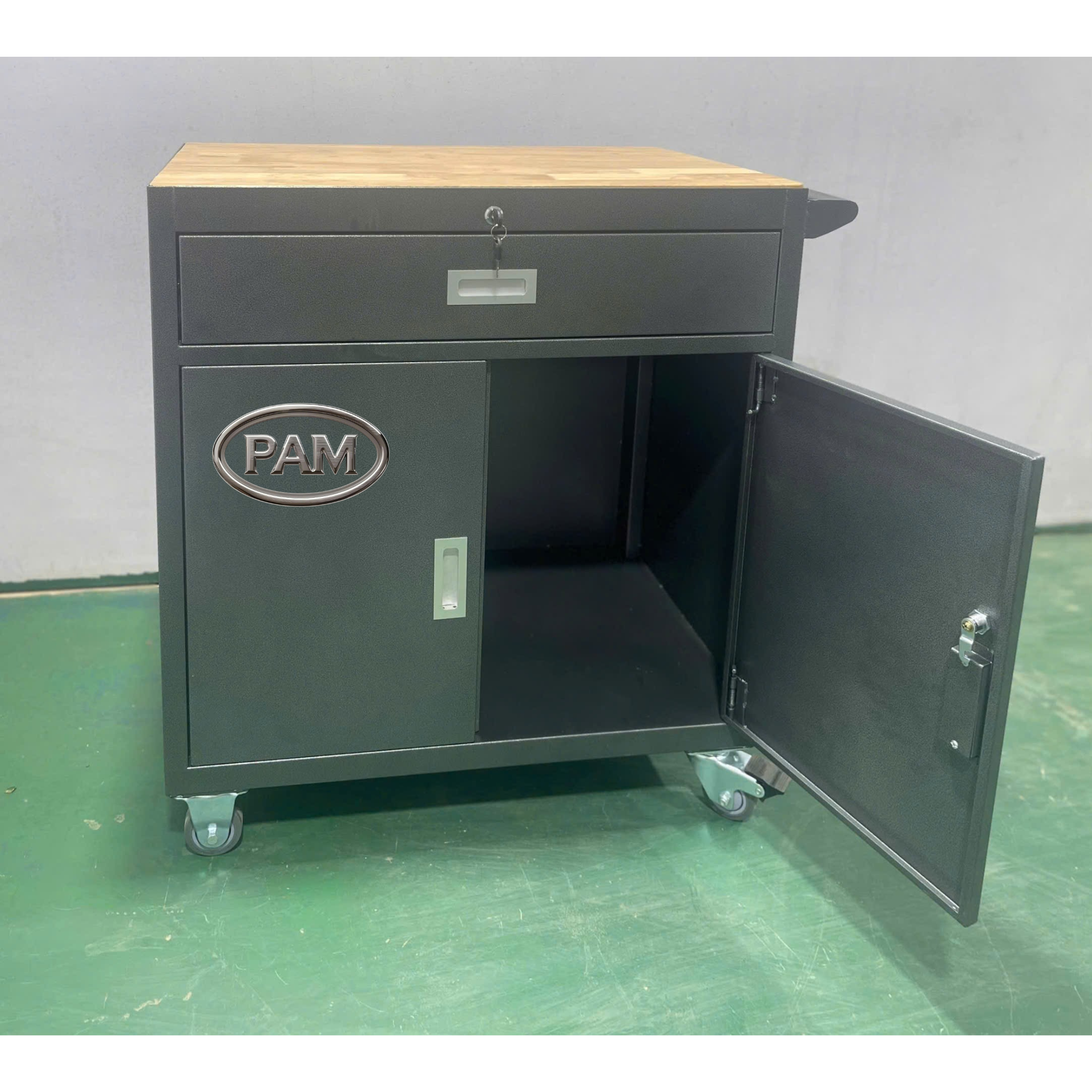 Tủ dụng cụ cơ khí đa năng, có bánh xe, mặt gỗ dày 18mm, tiện lợi cho sửa chữa, bảo dưỡng tại xưởng